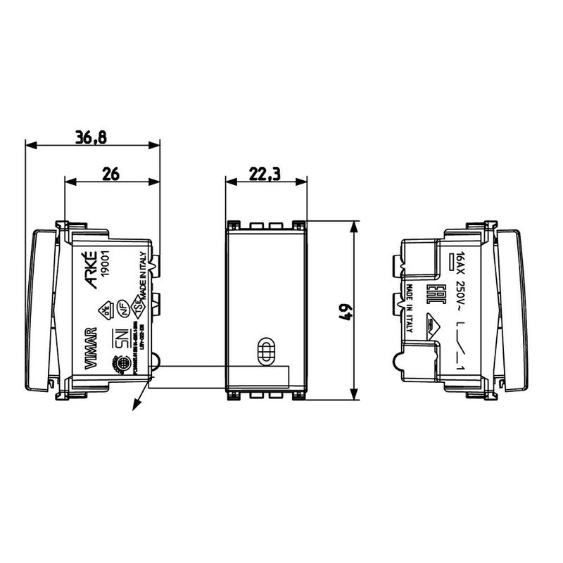魅せるSwitch日本初上陸 MADE IN ITALYスイッチ VIMAR ヴィマー ARKE アルケ 19001.M 片切タンブラースイッチ15A メタル