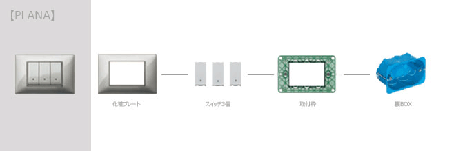 ご注文方法:化粧プレート、スイッチ3つ、取付枠、裏BOX(必要に応じて)の部品をそれぞれ必ずご注文ください。