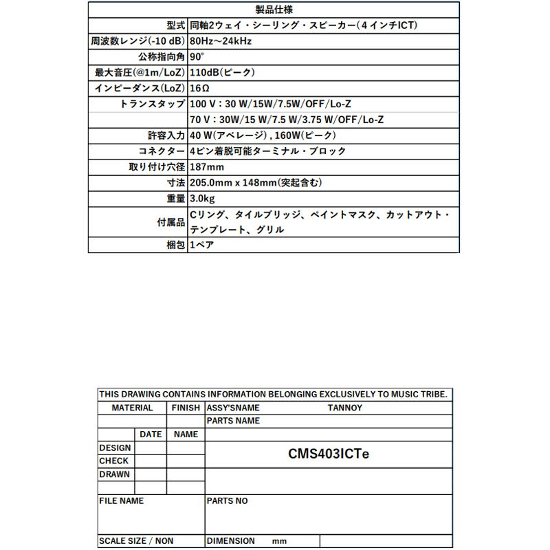 TANNOY タンノイ CMS 403ICTe 4インチICTドライバー 天井埋込型ラウドスピーカー 角度調整可能タイプ 白 ペア