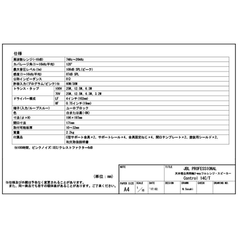 JBLサウンドを広範囲に届ける天埋めスピーカー(小型モデル) JBL ジェイビーエル Control 14C/T 天井埋込用同軸2-Wayフルレンジスピーカー/シーリング型 白 ペア