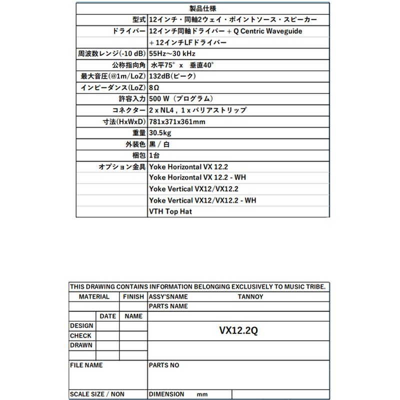 TANNOY タンノイ VX 12.2Q 12インチDCドライバー with Q-Centric Waveguide +12インチ低域ドライバー 小規模PA & 固定設備向け フルレンジ ラウドスピーカー 黒