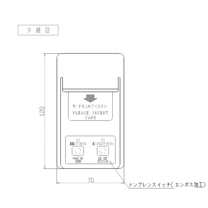 電源制御回路を持たないタイプのカードホルダーです。カードキーの有無に連動して客室内の在室状態を外部接点出力を行います。