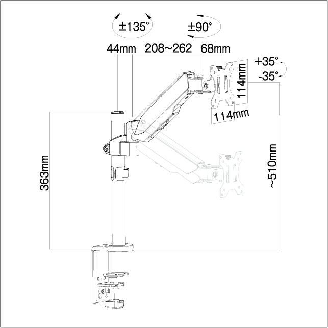 17~32Vディスプレイをデスクにセットするデスクアームです