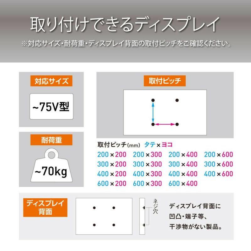 4. HAYAMI SELECT ハヤミセレクト HMS-LM1173 マルチ壁掛金具 VESA規格対応プッシュ式 ~75V型 ブラックカラー