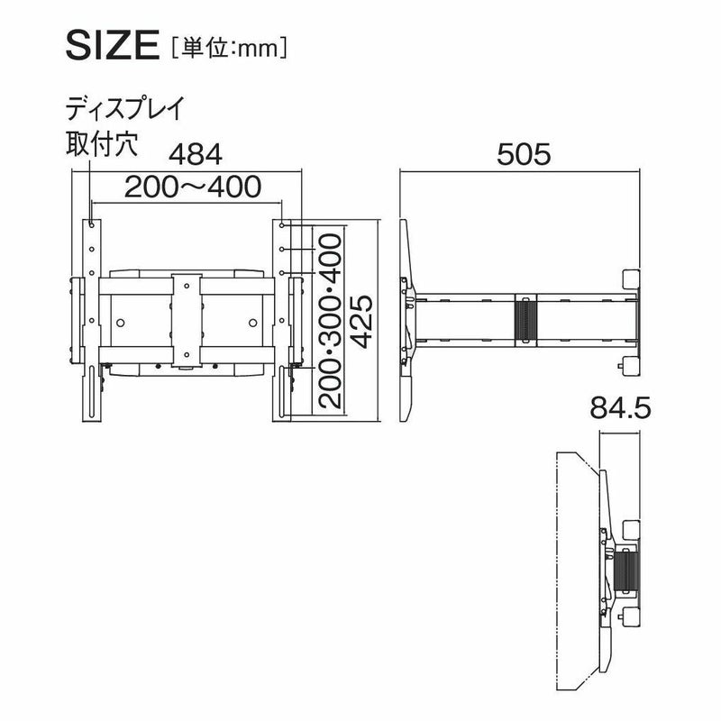 ●目安ディスプレイインチ:~40インチ/●ディスプレイ積載質量:~15kg/●ディスプレイ取付方式:VESA W:200~400mm H:100・200・300・400mm