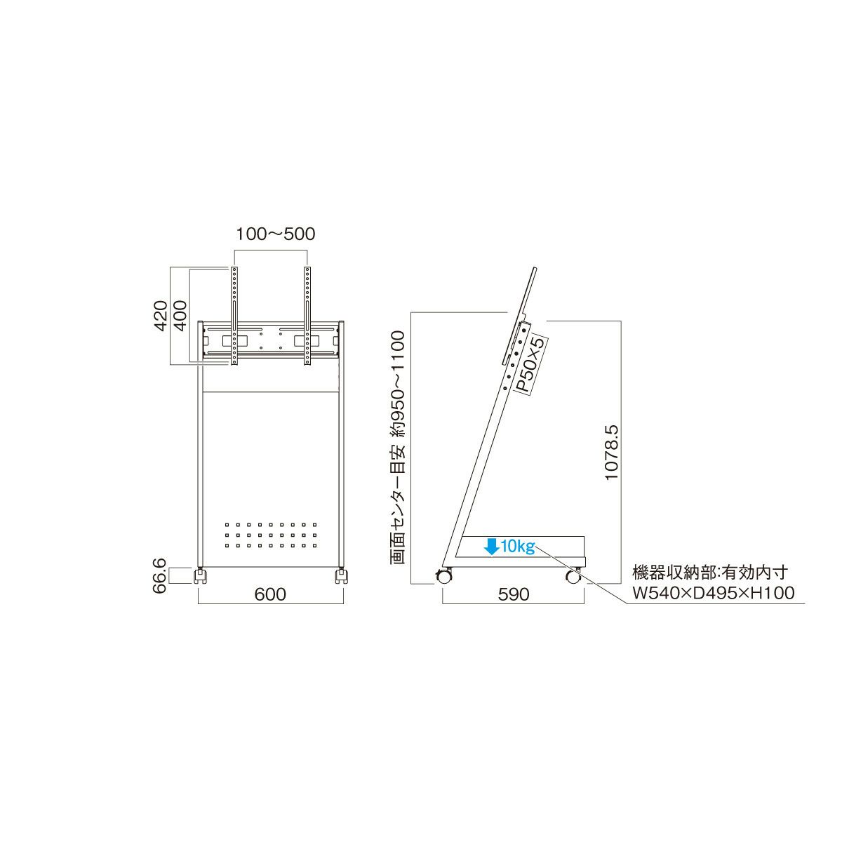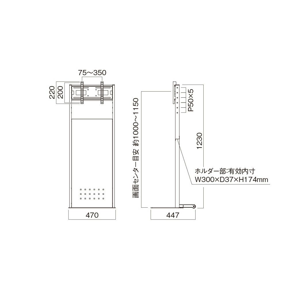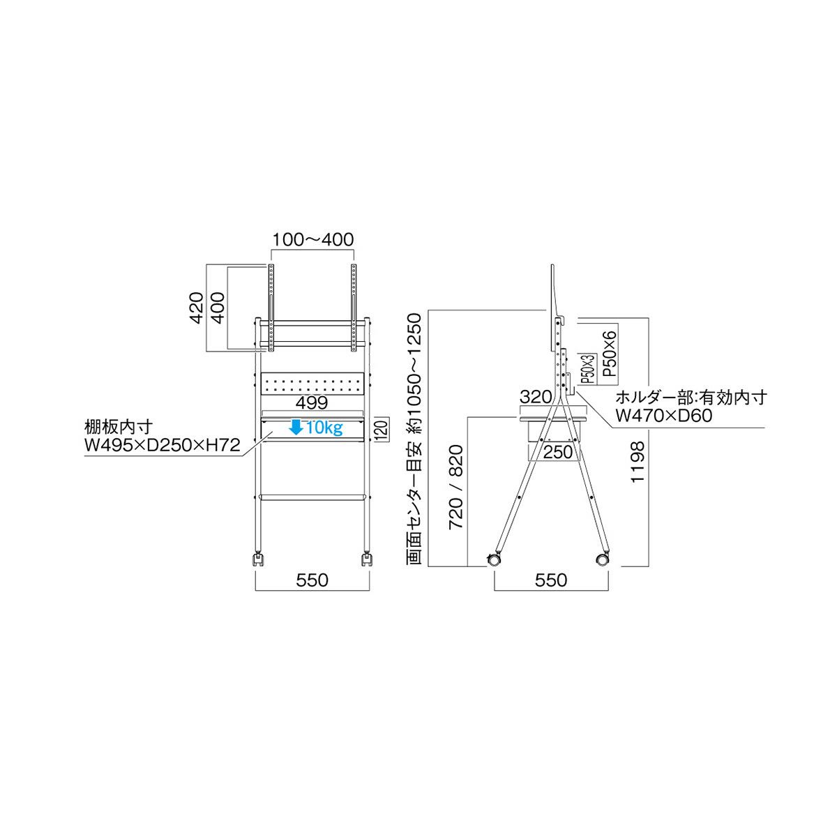 小規模オフィスや少人数でのミーティングに便利なコンパクトディスプレイスタンド HAMILEX ハミレックス PU-254 コンパクトディスプレイスタンド ブラック/ホワイト ~50V型