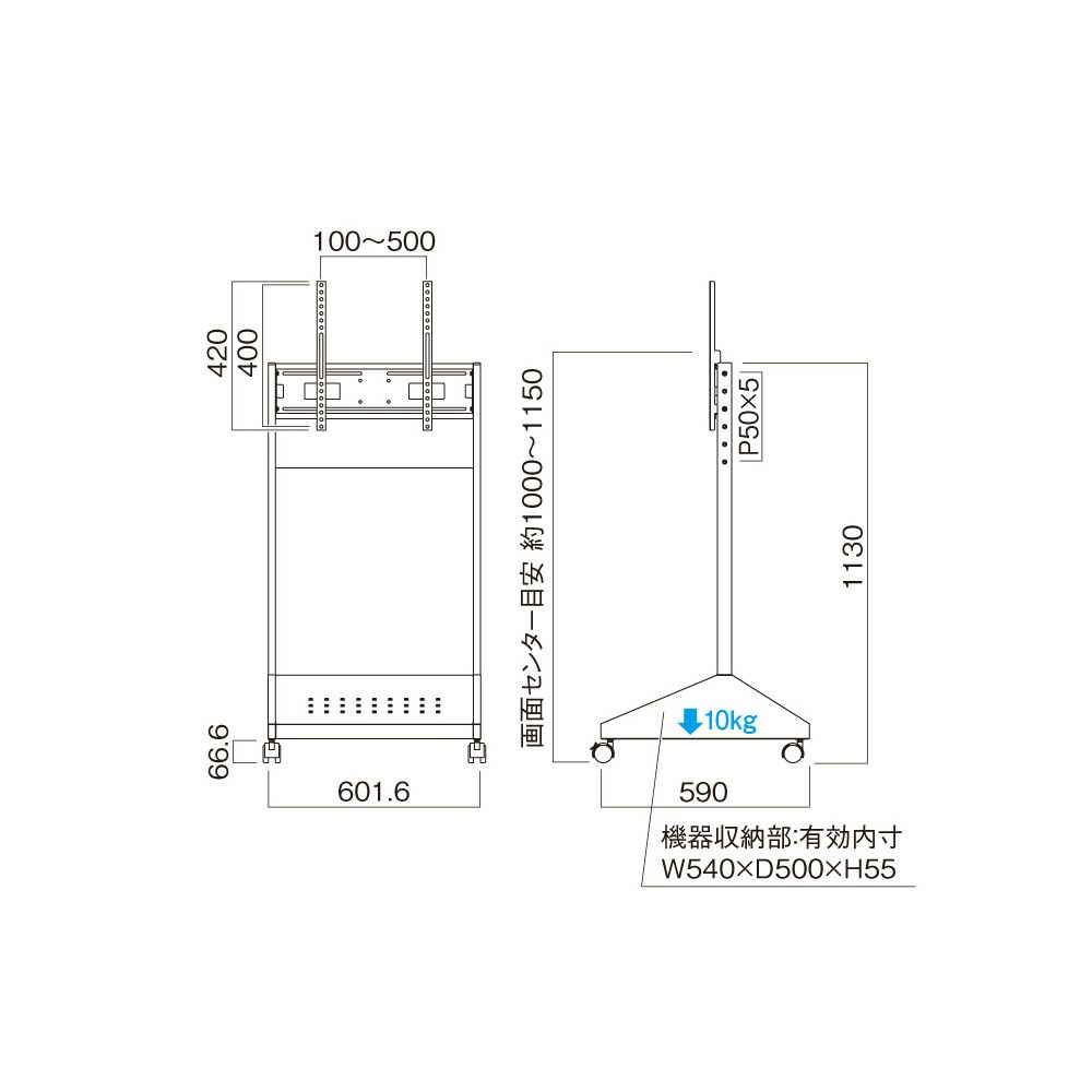教室になじむホワイトカラーとテレビにマッチするブラックカラーをラインアップ HAMILEX ハミレックス PH-556 ~65V型対応ディスプレイスタンド 黒/白