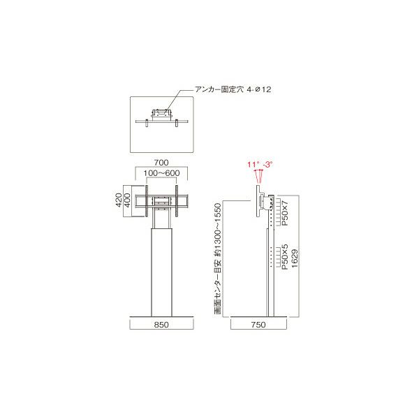 100型の巨大ディスプレイにも対応。テレビ会議やインフォメーションなどあらゆるシーンで活躍するスタンダードモデル HAMILEX ハミレックス PH-829 ~100V型対応ディスプレイスタンド 黒/シルバー