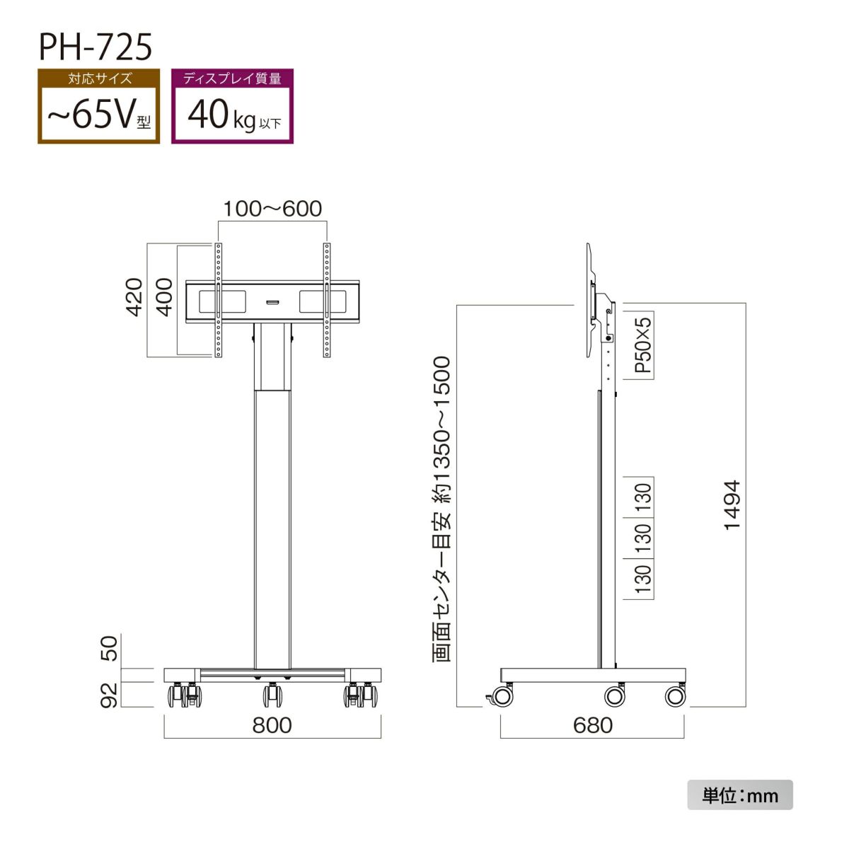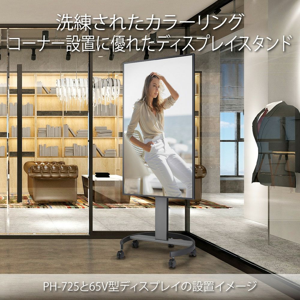 85型まで対応可能。テレビ会議やインフォメーションなどあらゆるシーンで活躍するスタンダードモデル HAMILEX ハミレックス PH-827 ~85V型対応ディスプレイスタンド 黒/シルバー