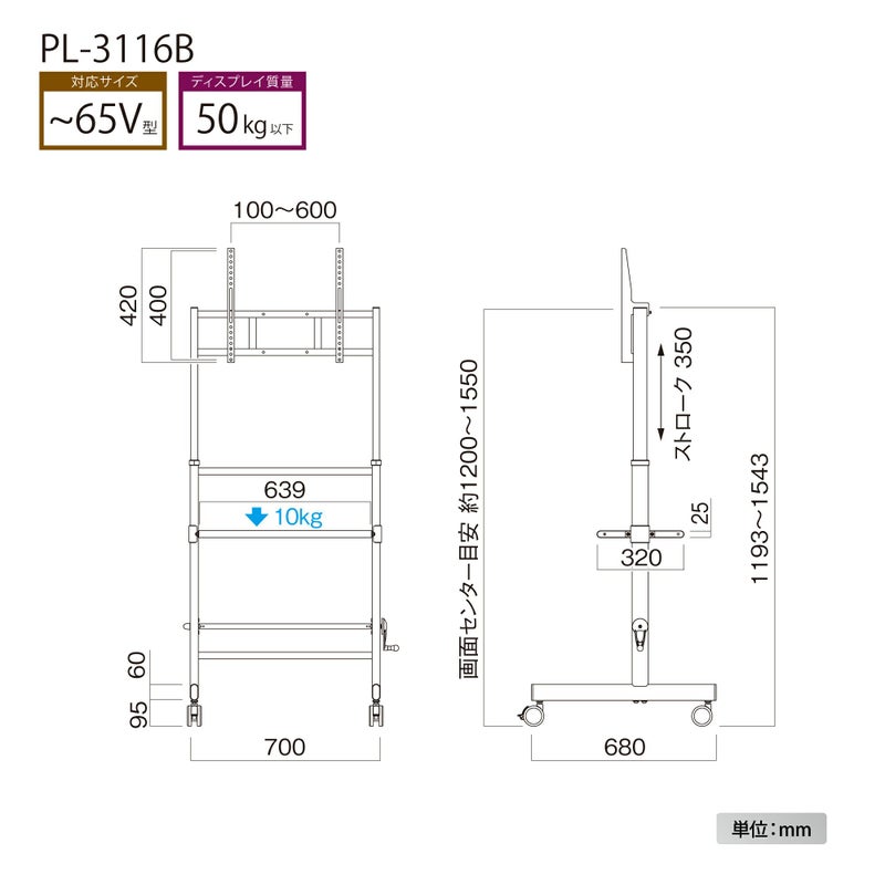 ハンドルを回して高さを調整できる。60型ディスプレイまで取り付け可能な手動昇降式ディスプレイスタンド HAMILEX ハミレックス PL-5135B ~60V型対応ディスプレイスタンド (ハンドル昇降タイプ) 当店特別価格 ¥ 48,840 税込 お気に入りに登録する