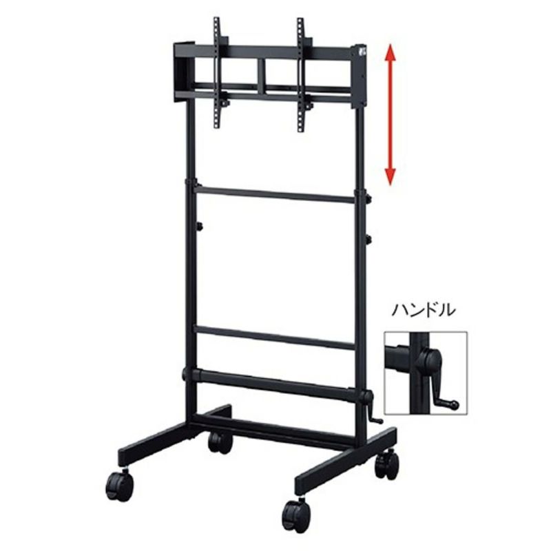 ハンドルを回して高さを調整できる。60型ディスプレイまで取り付け可能な手動昇降式ディスプレイスタンド HAMILEX ハミレックス PL-5135B ~60V型対応ディスプレイスタンド (ハンドル昇降タイプ)