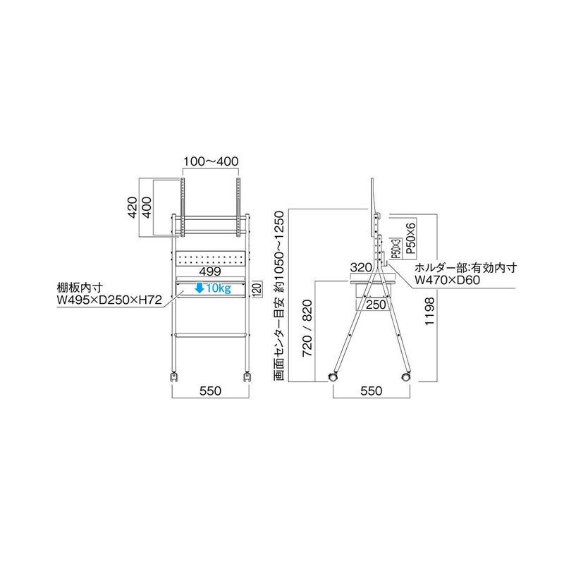 ・総耐荷重 50kg(取付ディスプレイ:20kg以下)