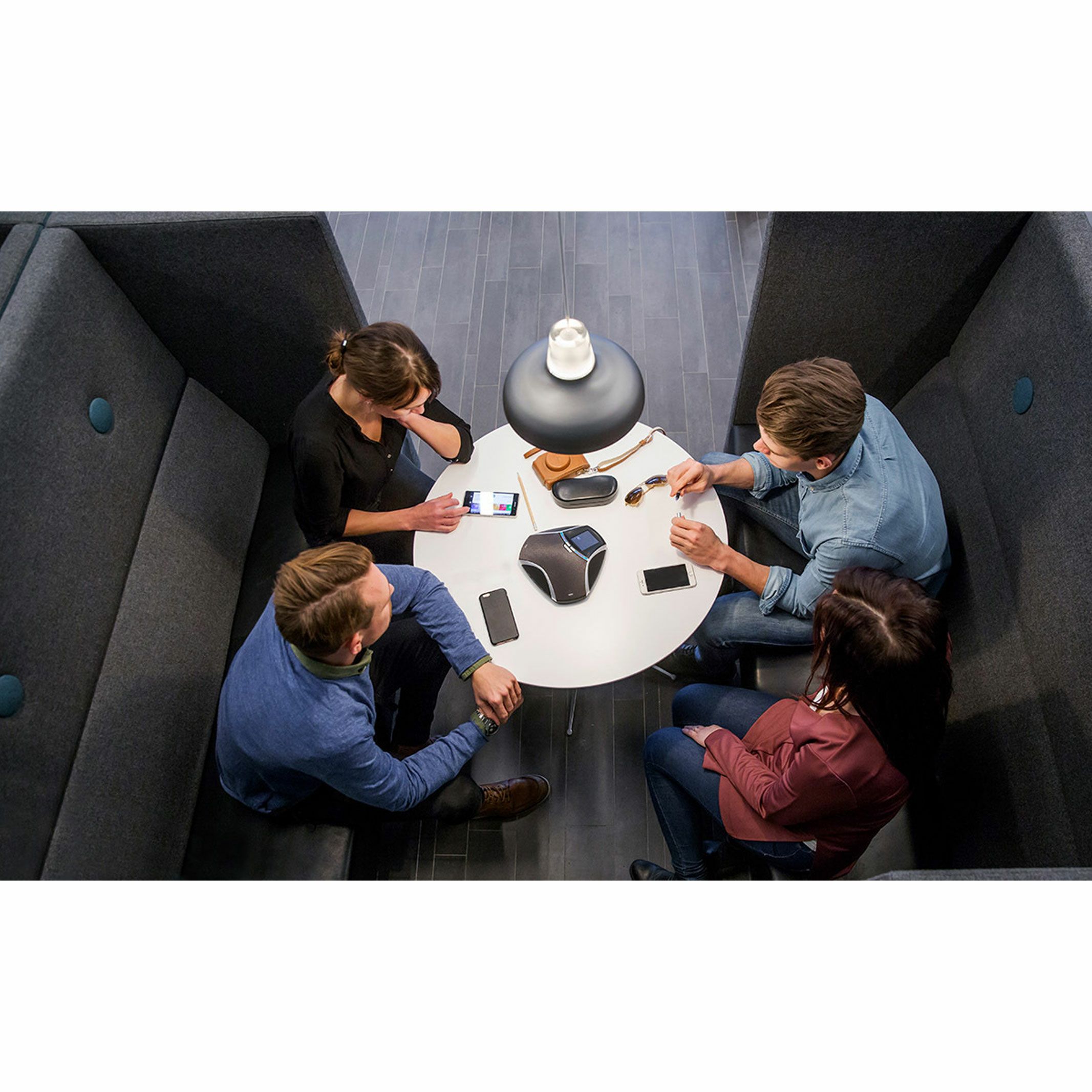 Konftel 55Wxは個人用のスピーカーフォンです。タッチスクリーンを使用すれば、操作は簡単で楽に。独自のOmniSound®音声技術のおかげで音は極めて明瞭。在宅勤務、在宅ワークやテレワークでのオンライン会議やWeb会議用のスピーカーフォンとしても最適です。