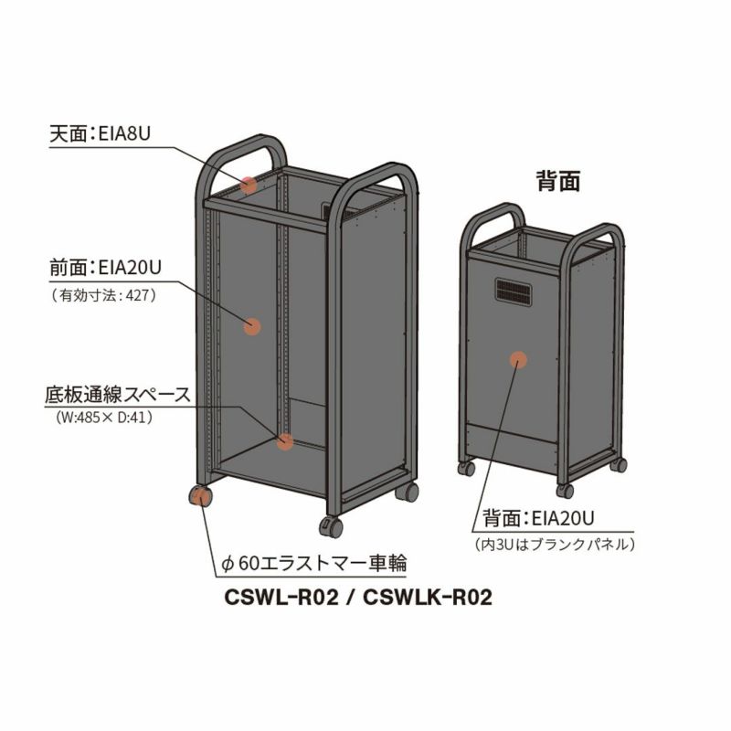 角パイプ構造による、設備構築に最適でシンプルなワゴンです。 CANARE カナレ CSWL-R03 システムAVワゴン 20U 天面10U 角パイプ 組立済/組立式 ブラック
