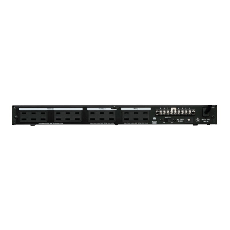 14.9A、連動2P後面×12、非連動3P前面×3、電源ON/OFF遅延シークエンス、入力電圧表示ディスプレイ、外部電源制御入出力端子 TASCAM タスカム AV-P2800 パワーディストリビューター/コンディショナー