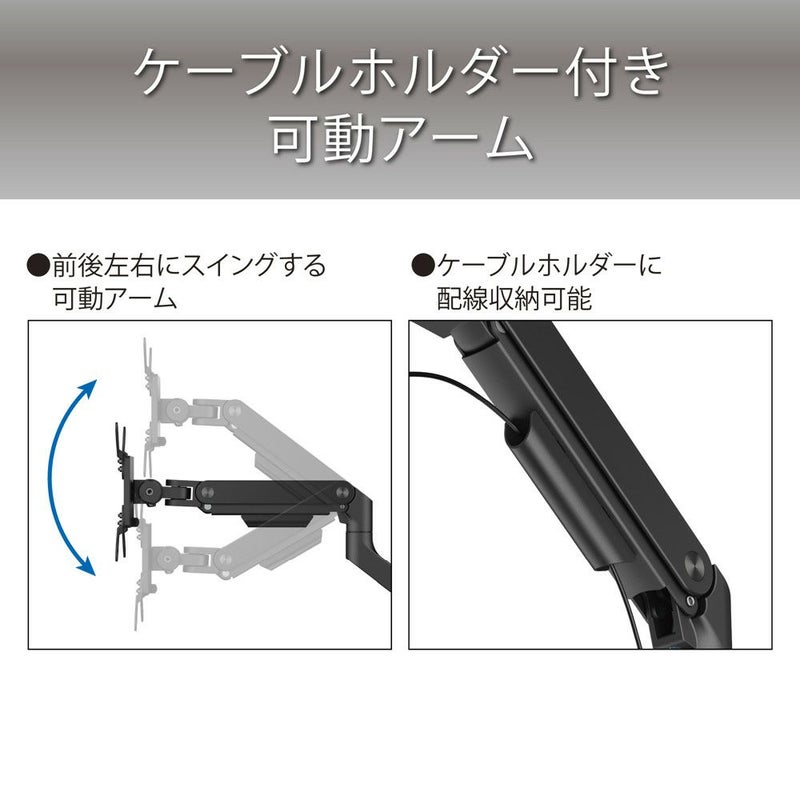 中~大型モニター、ワイドモニターに対応するモニターアーム