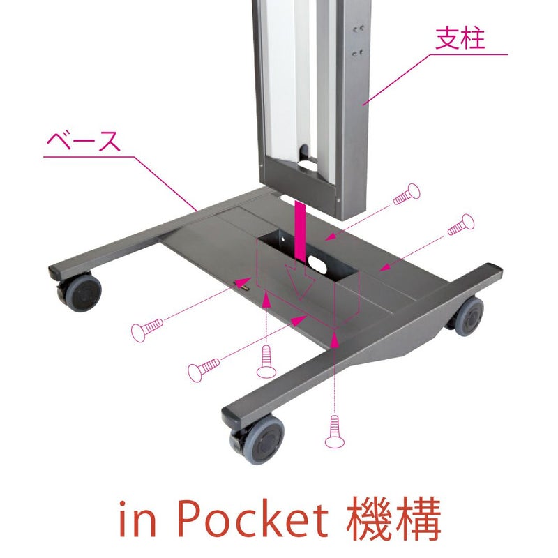 in Pocket 機構:支柱をベースに差し込み、3方向ネジ止めでしっかりホールド。/2重安全機構:溶接のみに負担をかけない2重安全構造。