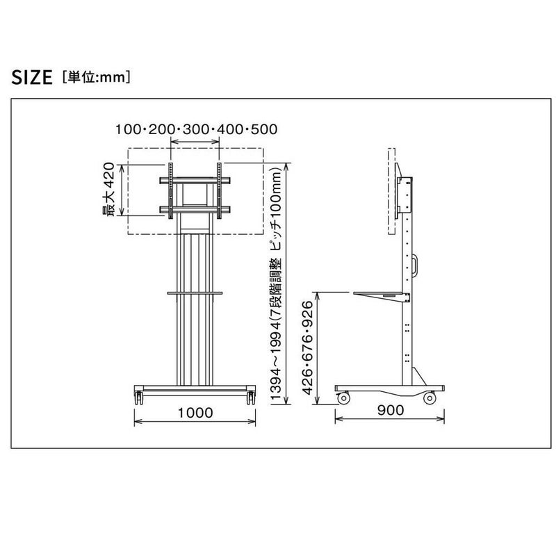 ●目安ディスプレイインチ:~80インチ/●ディスプレイ積載質量:~70kg/●ディスプレイ取付方式:VESA W:100~700mm H:~600mm
