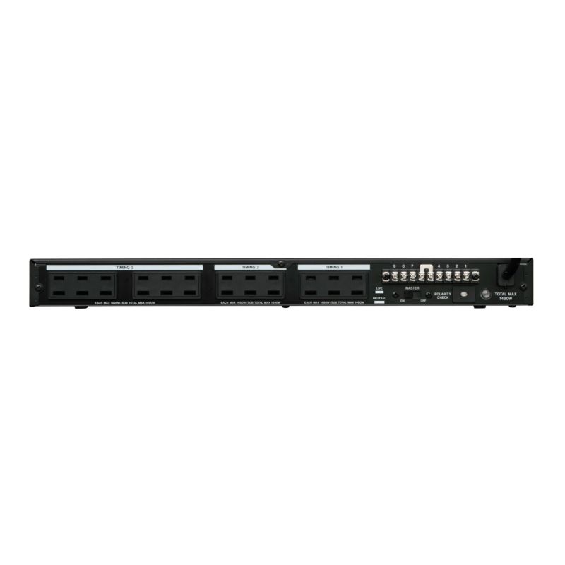 14.9A、連動2P後面×12、非連動3P前面×3、電源ON/OFF遅延シークエンス、入力電圧表示ディスプレイ、外部電源制御入出力端子 TASCAM タスカム AV-P2800 パワーディストリビューター/コンディショナー