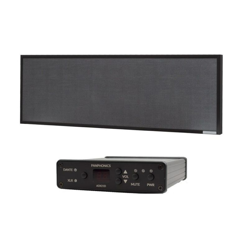“音のスポットライト”を放つ高指向性スピーカーで、新しい聞こえ方。 PANPHONICS パンフォニクス SSHP60x20-ADX21D-SET 高指向性スピーカー 60cm x 20cm Dante対応アンプセット 白/黒